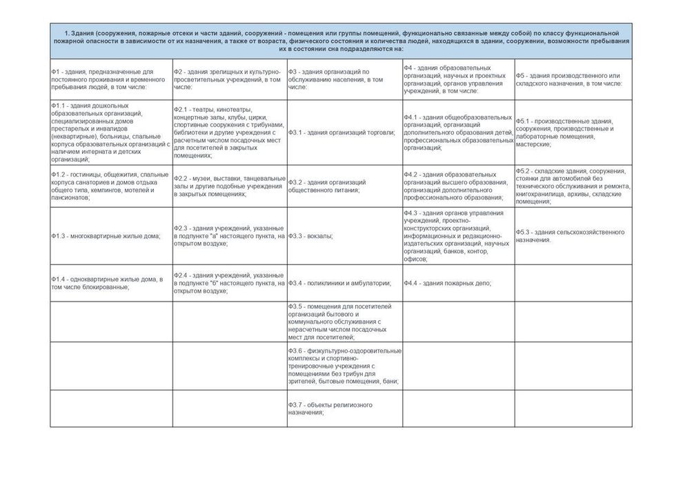 Разрешенная область применения для класса КМ1